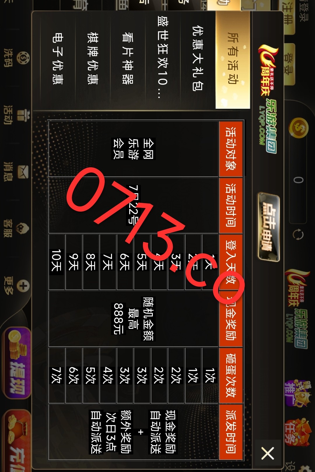 7.22号 当天登录 可以联系客服免费砸金蛋