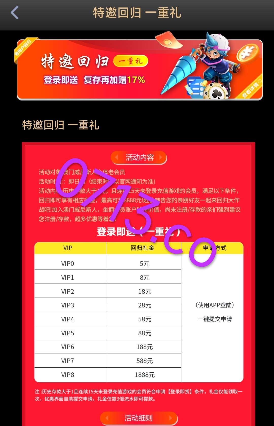 特邀老用户 回归彩金 有号的去 具体活动自行查看活动