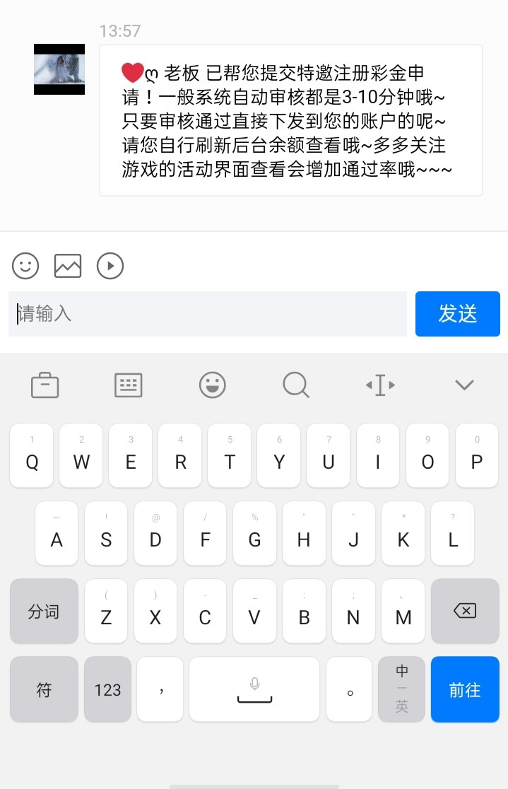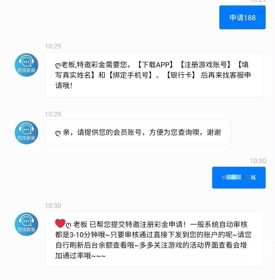 新用户注册绑卡,完善信息,找客服申请特邀彩金,没有收到短信的自助批短信图申请!