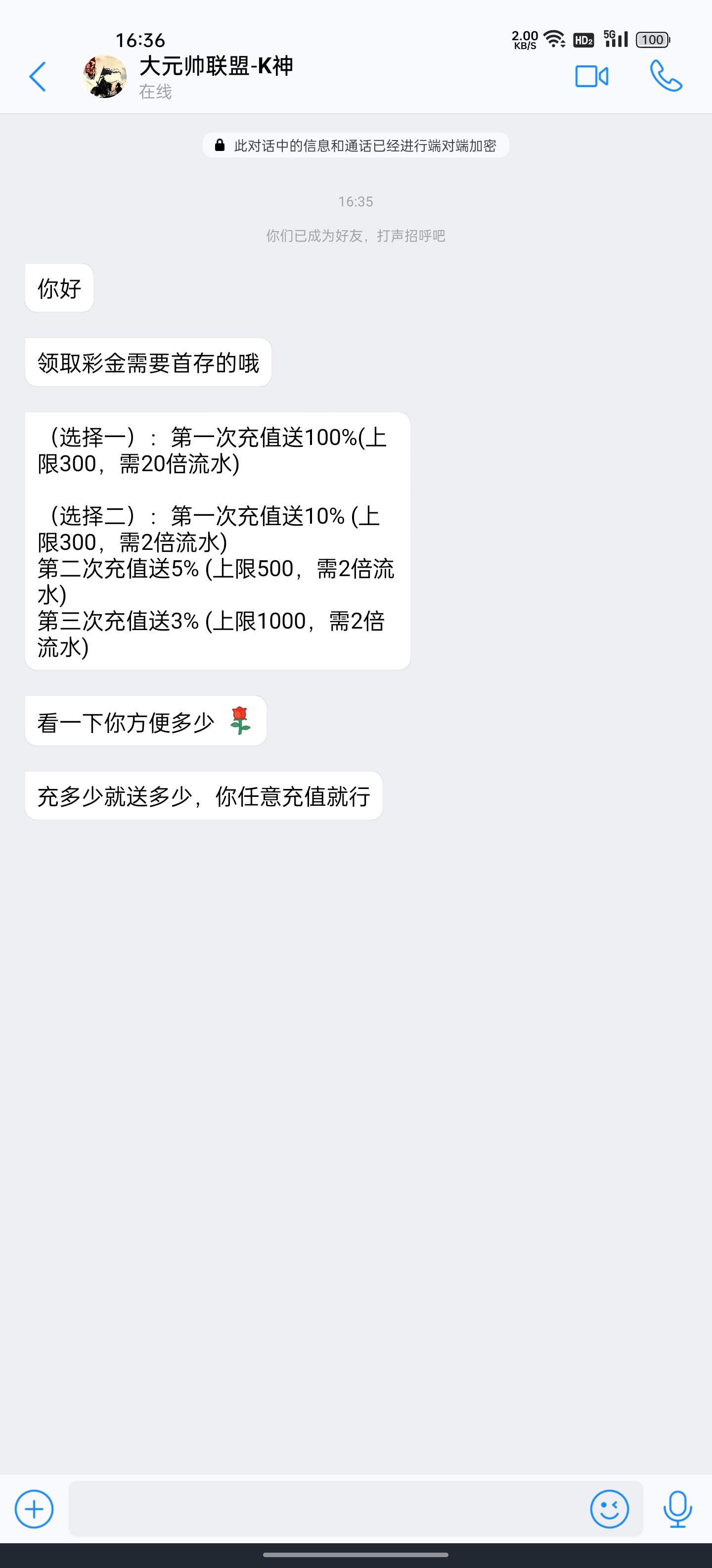 毛里求斯 ▶ 冲动的阿郎 这不是代理能加的,上面分配给代理的,在代理扶持名单中,让代理去电话或者短信通知,然后会员充值,代理可以额外拿奖金,去年196刚开时候 就让我代理来着 还给了名单,定期更新电话名单,我没空弄。 2023-3-5