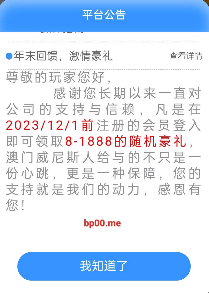 新用户无视!以前发过这个台子 12月1日前注册的老用户登陆领取8~1888回馈彩金 亲测没充值的也有 无游戏限制 最低提款100元