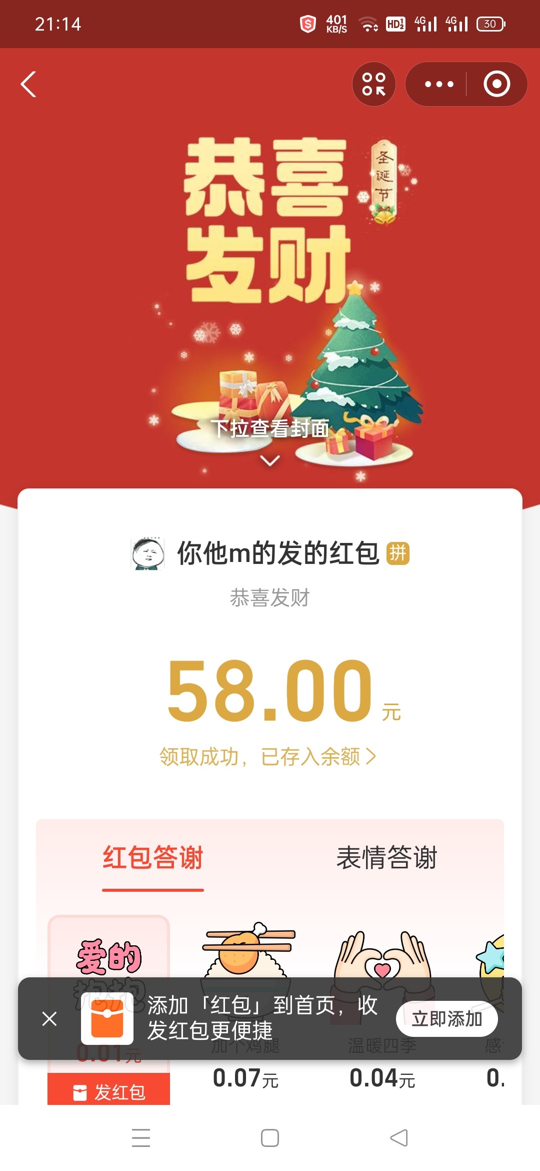 两个微信都打出来了,昨天活动没改8倍流水就能提58,现在已经改成按流水档次来给,我运气比较好,50一把连中13期,总共打到最高的1288流水,下88