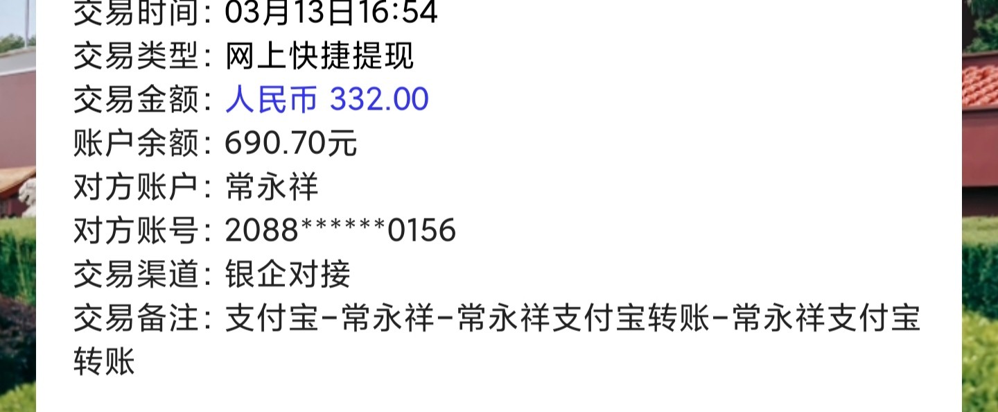 出款331到账了谢谢