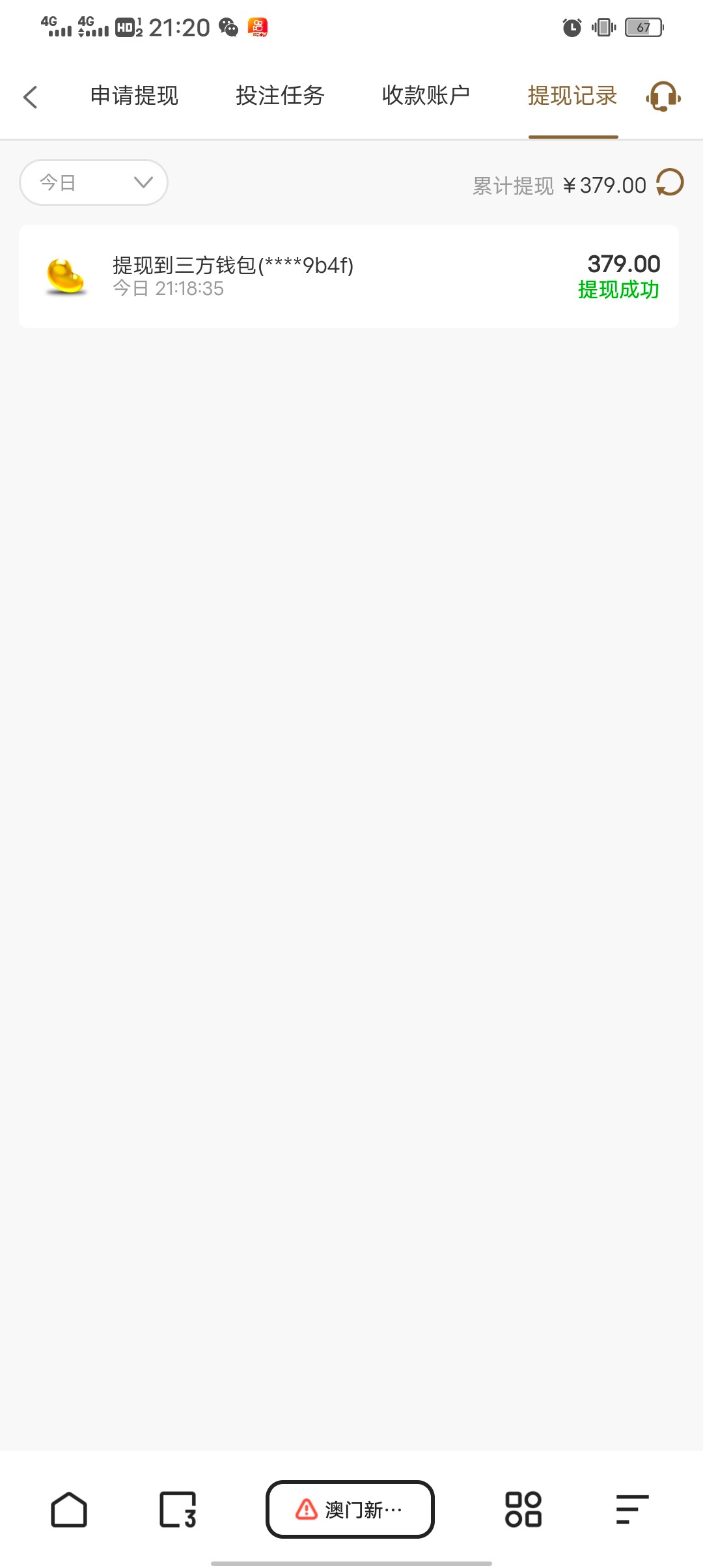 注册手机号验证送了38,水挺大,女王一进直接炸了450倍,后面打到700结果给我扣除了321,送38只给提379,还充值了10块钱进去才能提