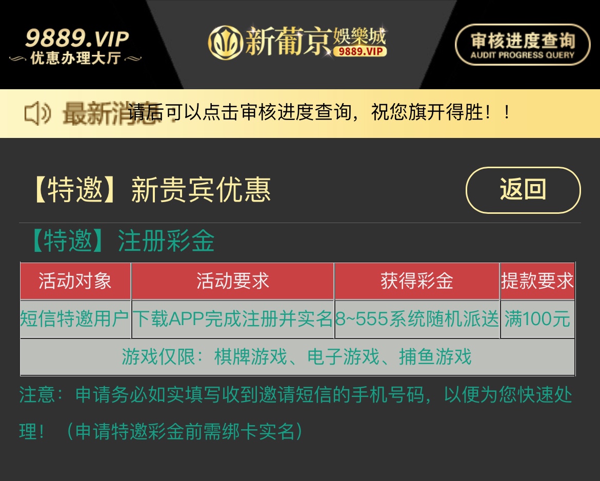 碰瓷短信特邀送8,注册绑手机号/银行卡自助申请,限电子棋牌捕鱼,最低提款100