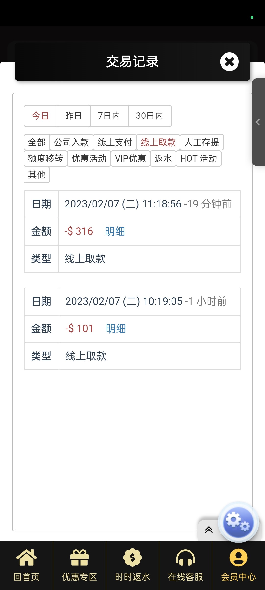签到领的彩金,最低100提,