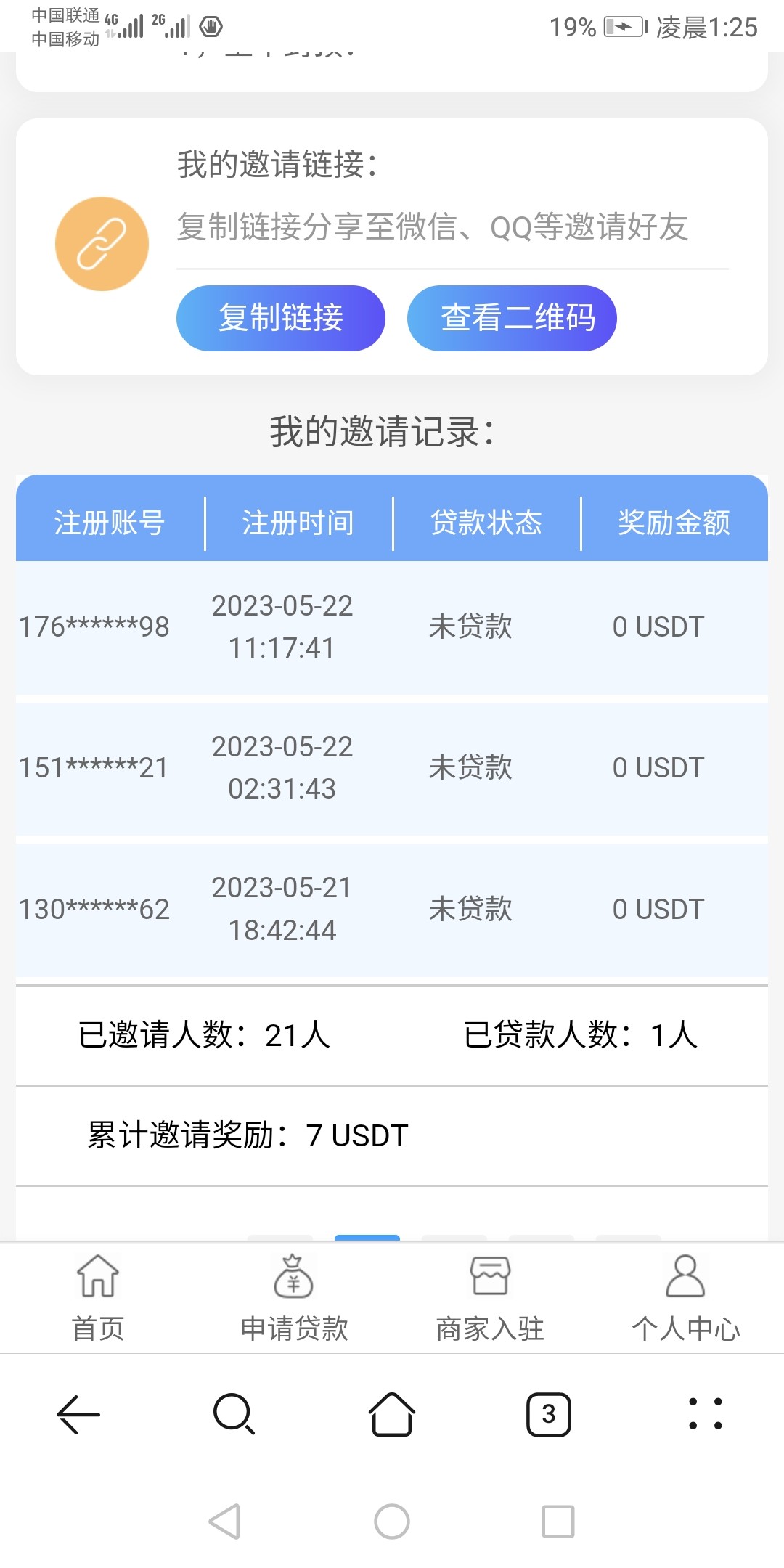 关键我没申请成功过啊?我只是邀请送的7u,我都没在他的平台申请成功贷款