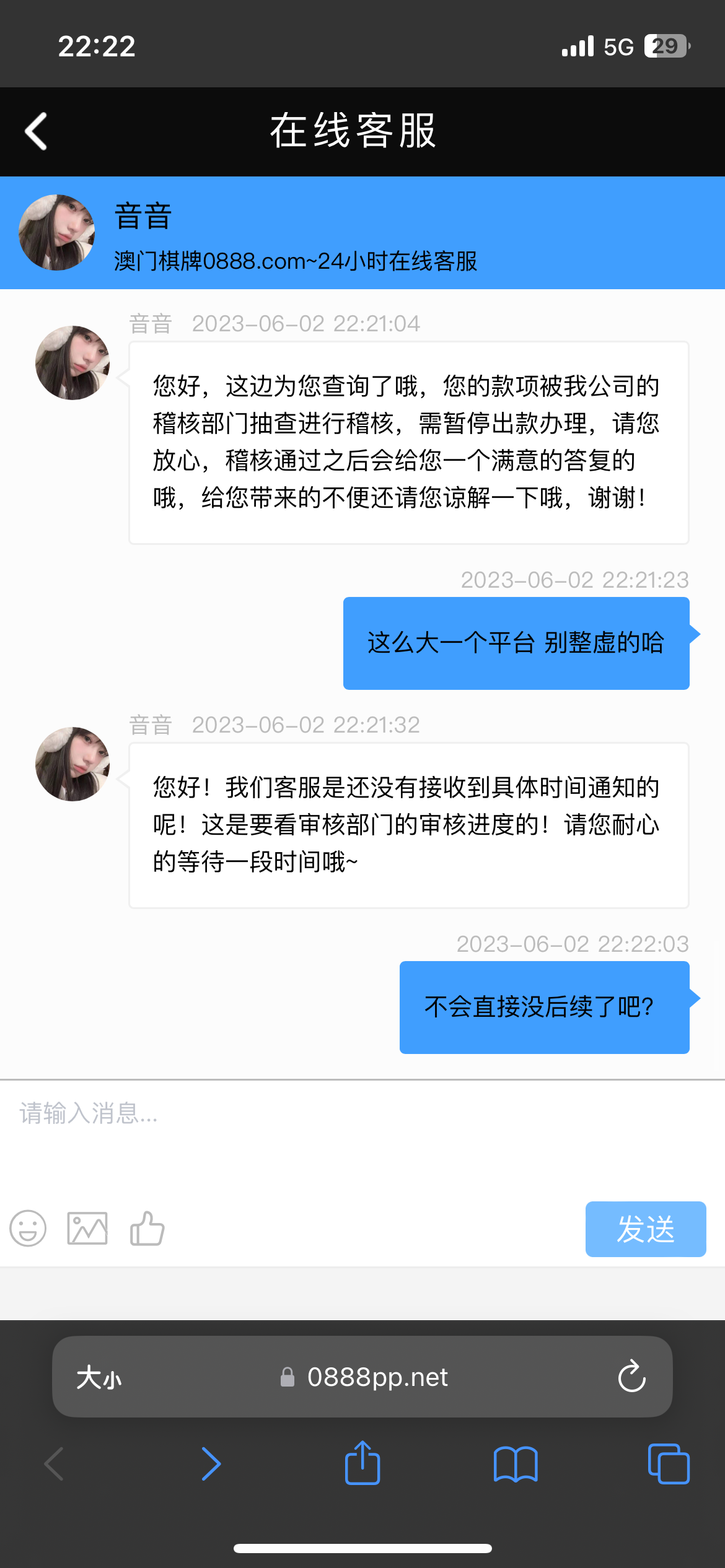 澳门棋牌 之前注册 今天打电话送58 400 显示完成 没到 问客服这么说 兄弟们看看是不是黑台