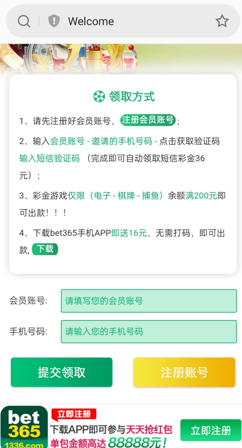 秒送系列,网站自助领取36元彩金,满200提,勿充值,尽量200下,bet系列较黑。