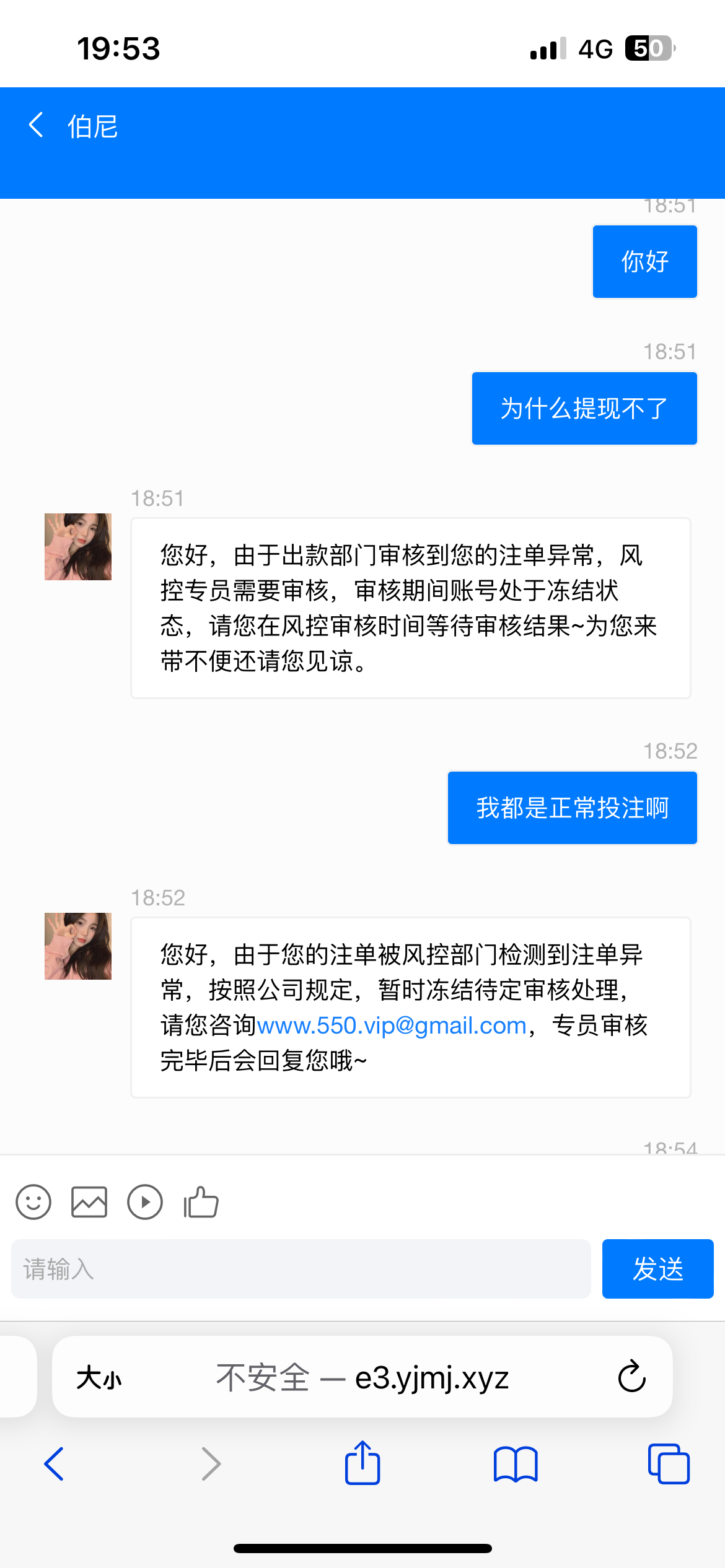 看看是哪个台子,我有一个被黑800的,话术跟你这个差不多,风控半年了还在风控