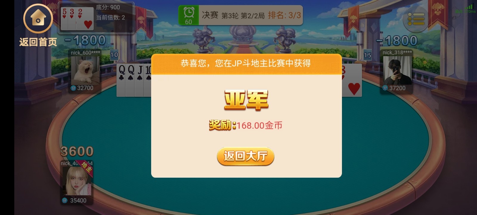 斗地主比赛打到第二