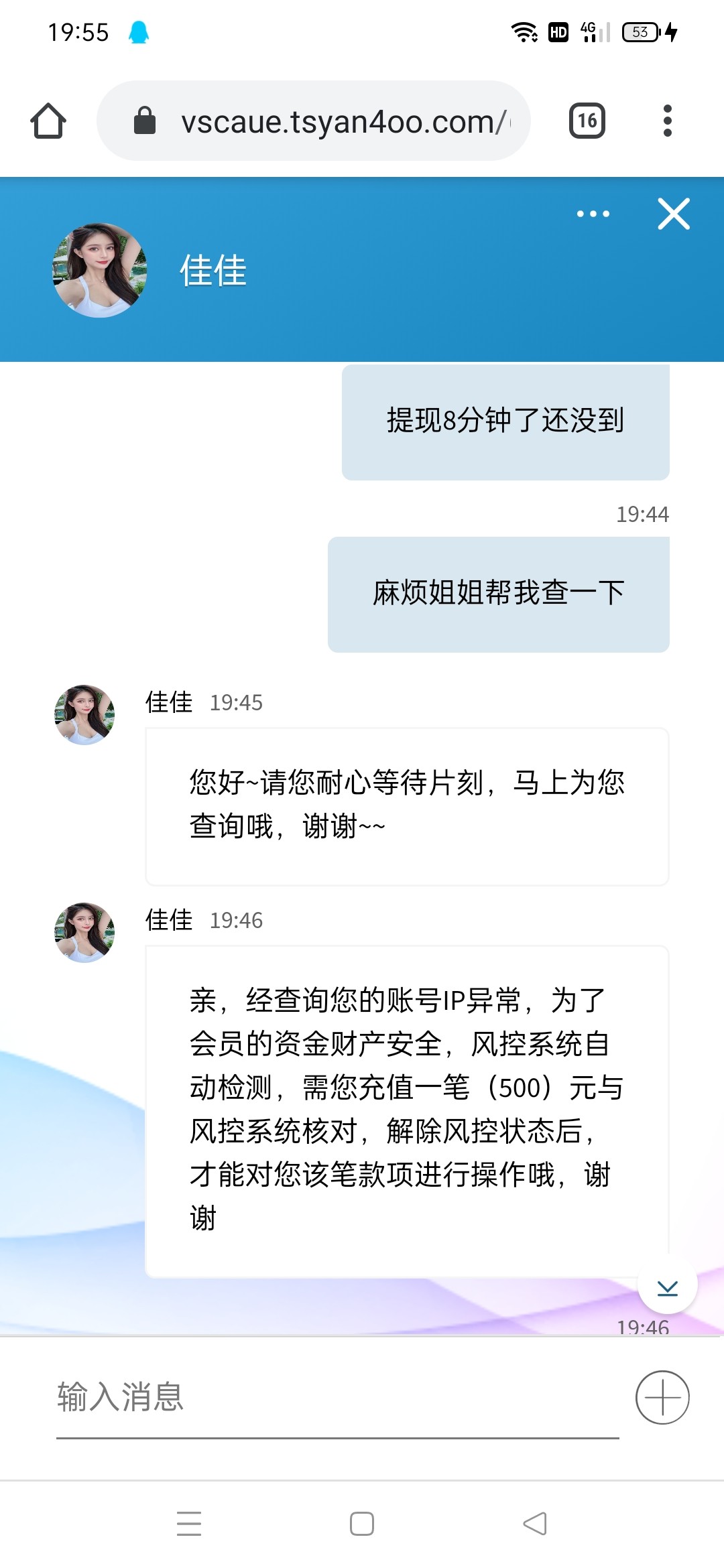 前面打电话送了6块钱,打到120出款说IP风险要我村120解冻,存了200打到1000出款又说IP风险存500解冻,给我气笑了,曹尼玛了个臭傻逼,一流直播所有工作人员不得好死!网址1616.tv