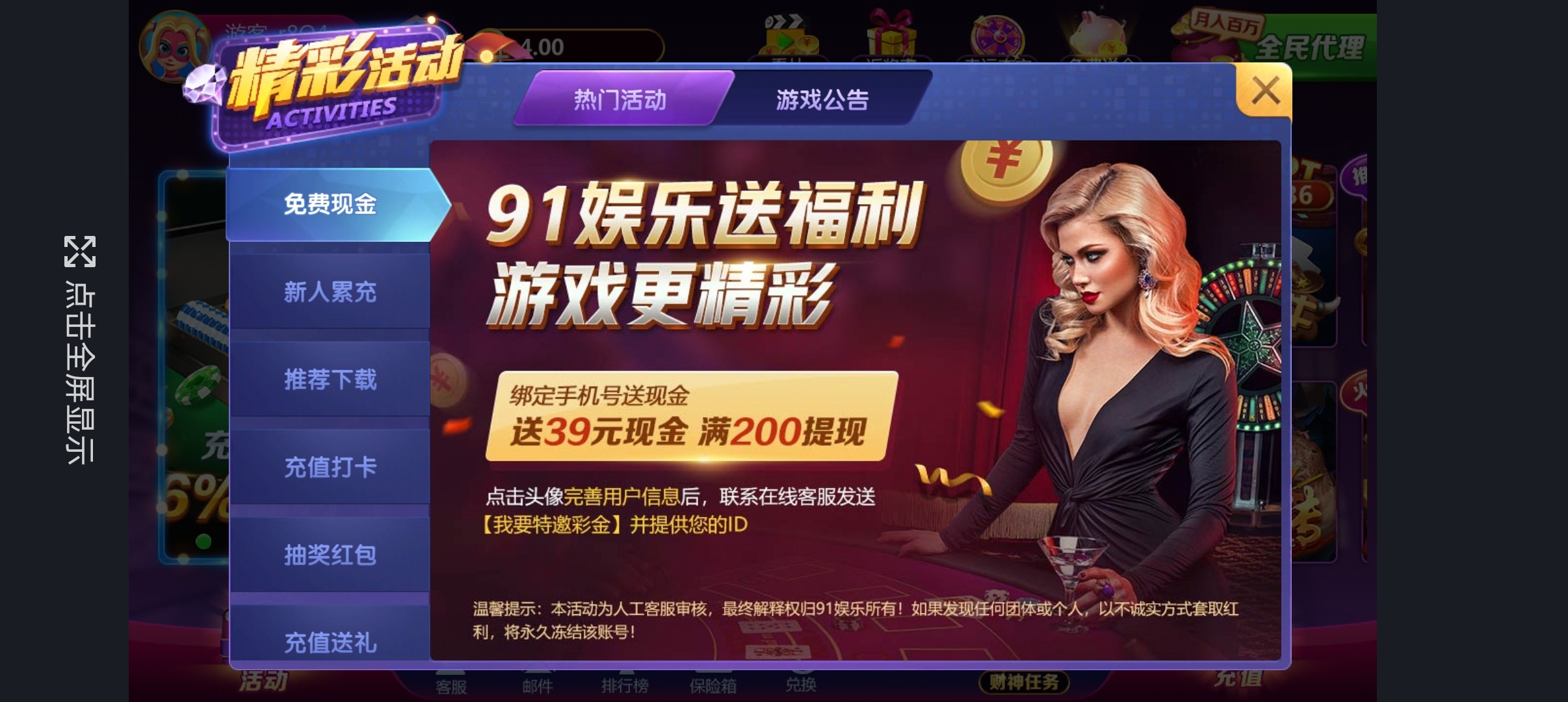 新用户注册绑定银行卡和手机号码后,自动领取39,打码流水到200即可提现只要符合条件,并且已验证成功,系统每10分钟会自动审核,如果超过10分钟没送就是不符合