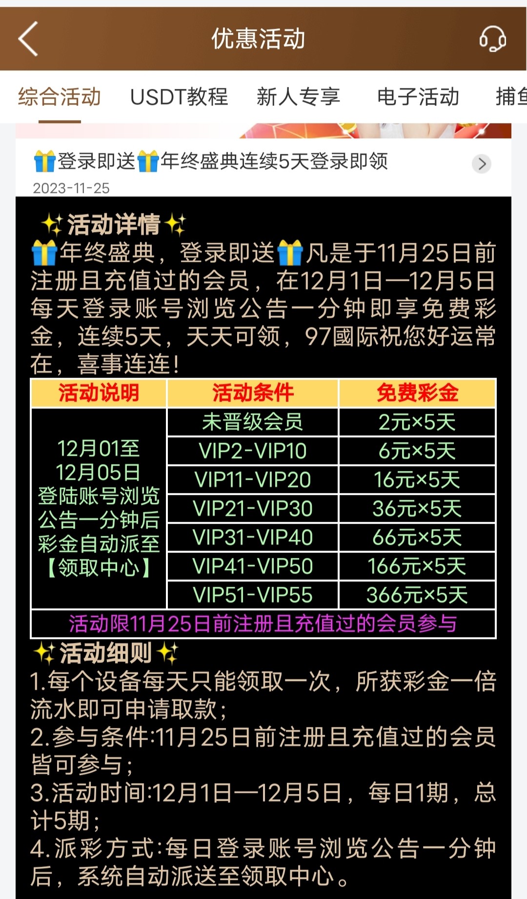 老用户1号到5号之间登录浏览一分钟送彩金