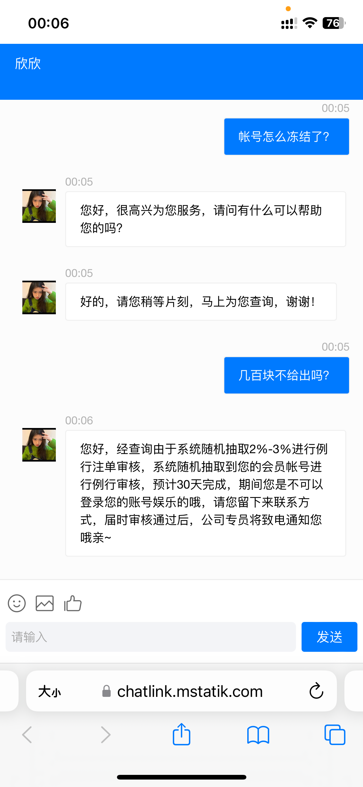 短信特邀100+66达到700提款直接冻结帐号说什么要审核注单请等待30天