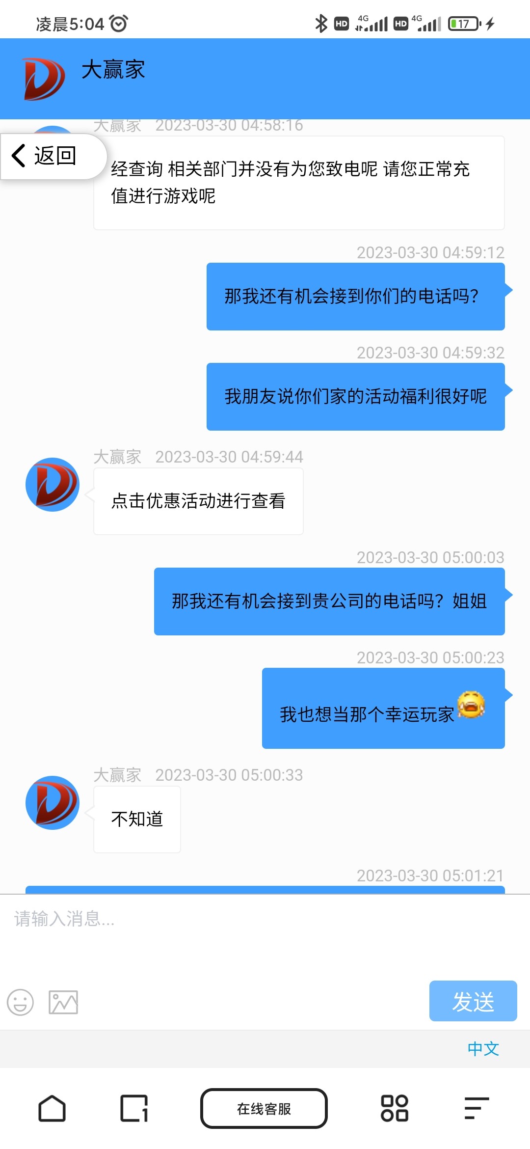 拉黑个几把,我还跟客服聊起来了呢