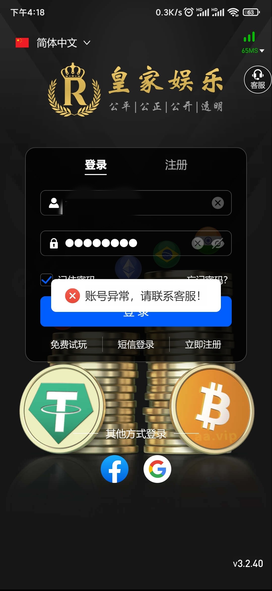 玩不了 直接给帐号异常 让你赢钱 要充350快才让提现的 黑平台