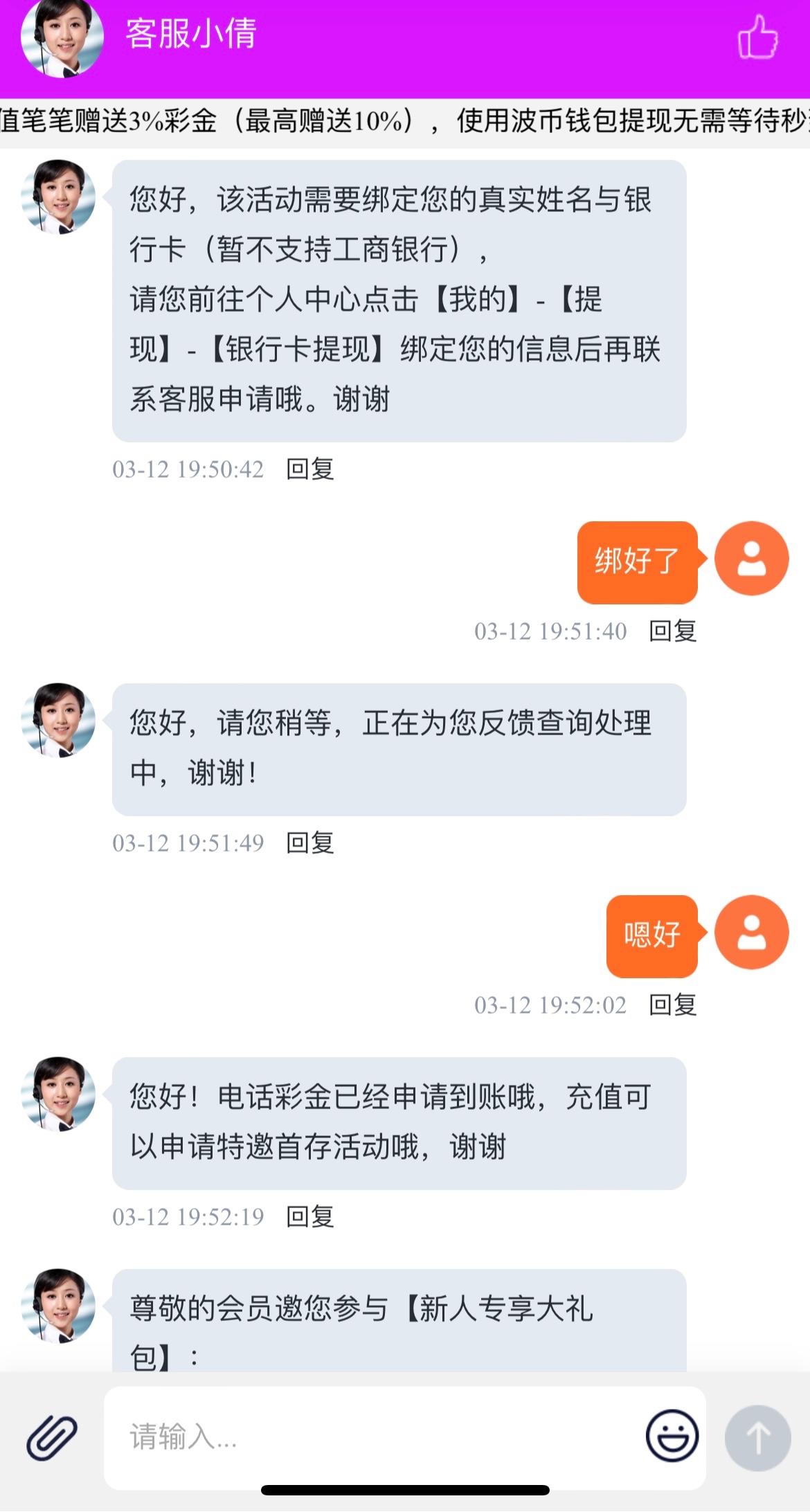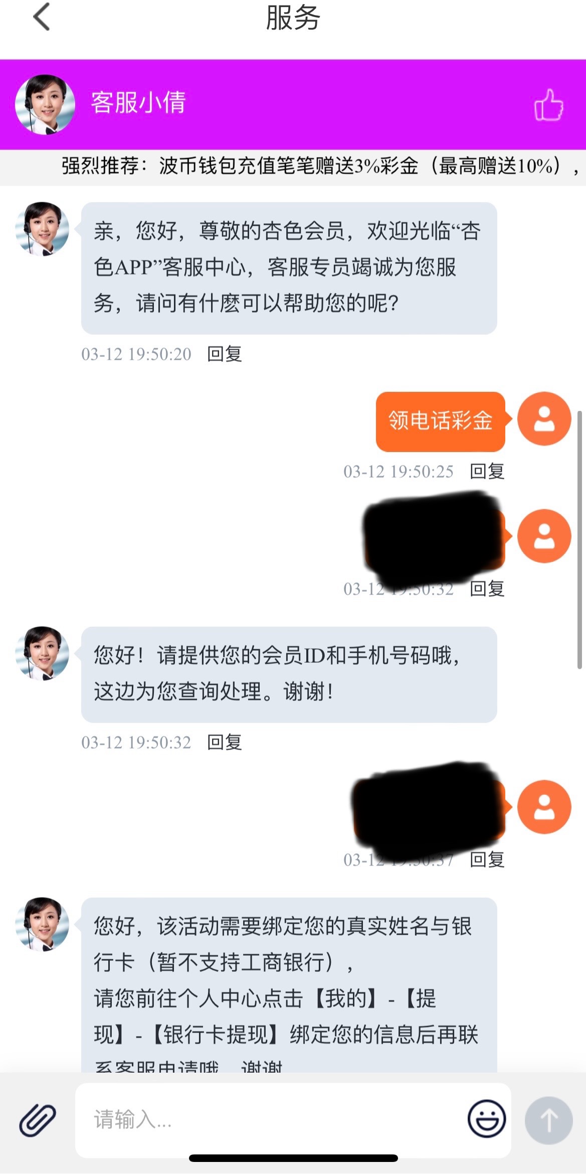 碰瓷电话彩金,有漏接的可以去试试,注册先别绑卡联系客服发ID和手机号给她,他让绑在绑没碰到等电话就行