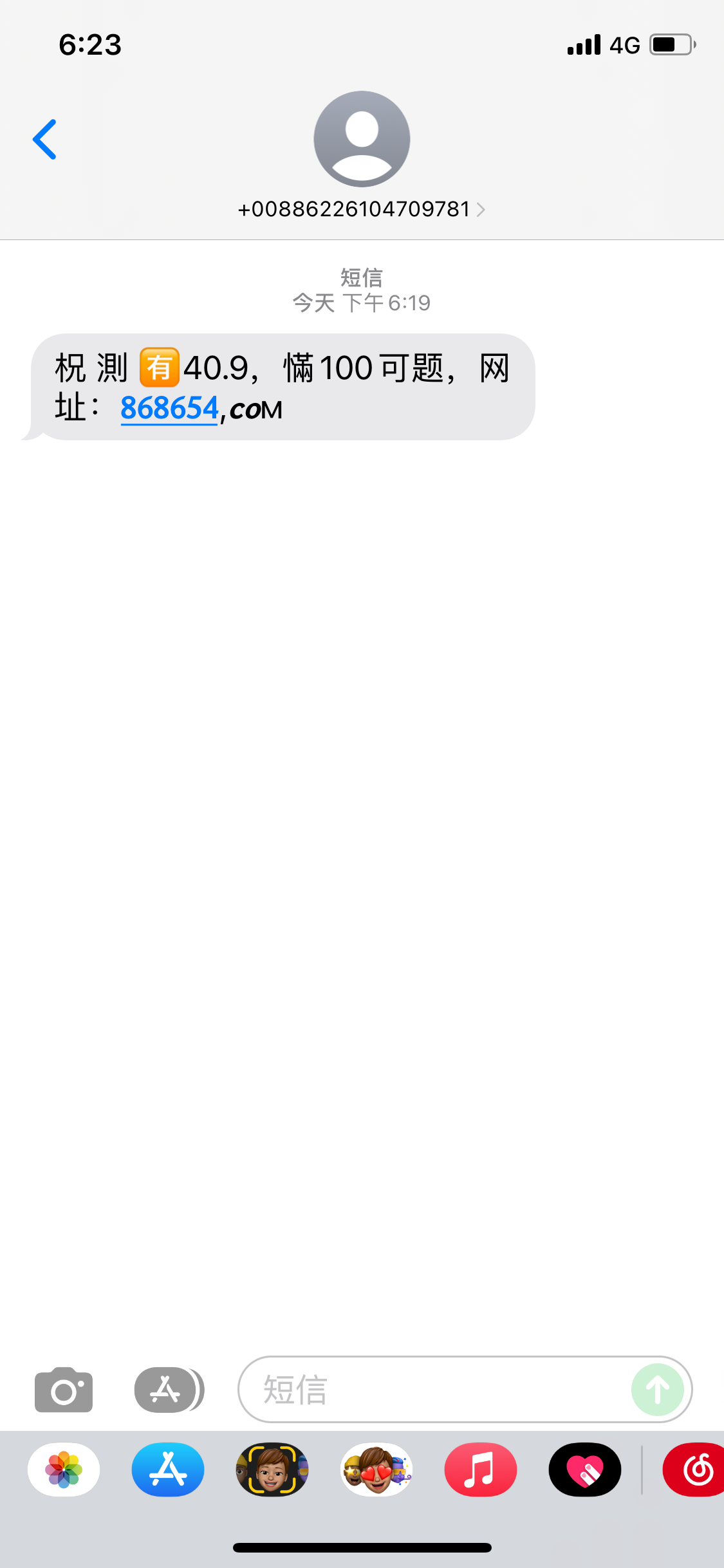 您好,您的号码不是我司特邀用户, 无法申请此彩金, 您可参与我司首存100+送30活动,谢谢。收到短信都这样怎么破
