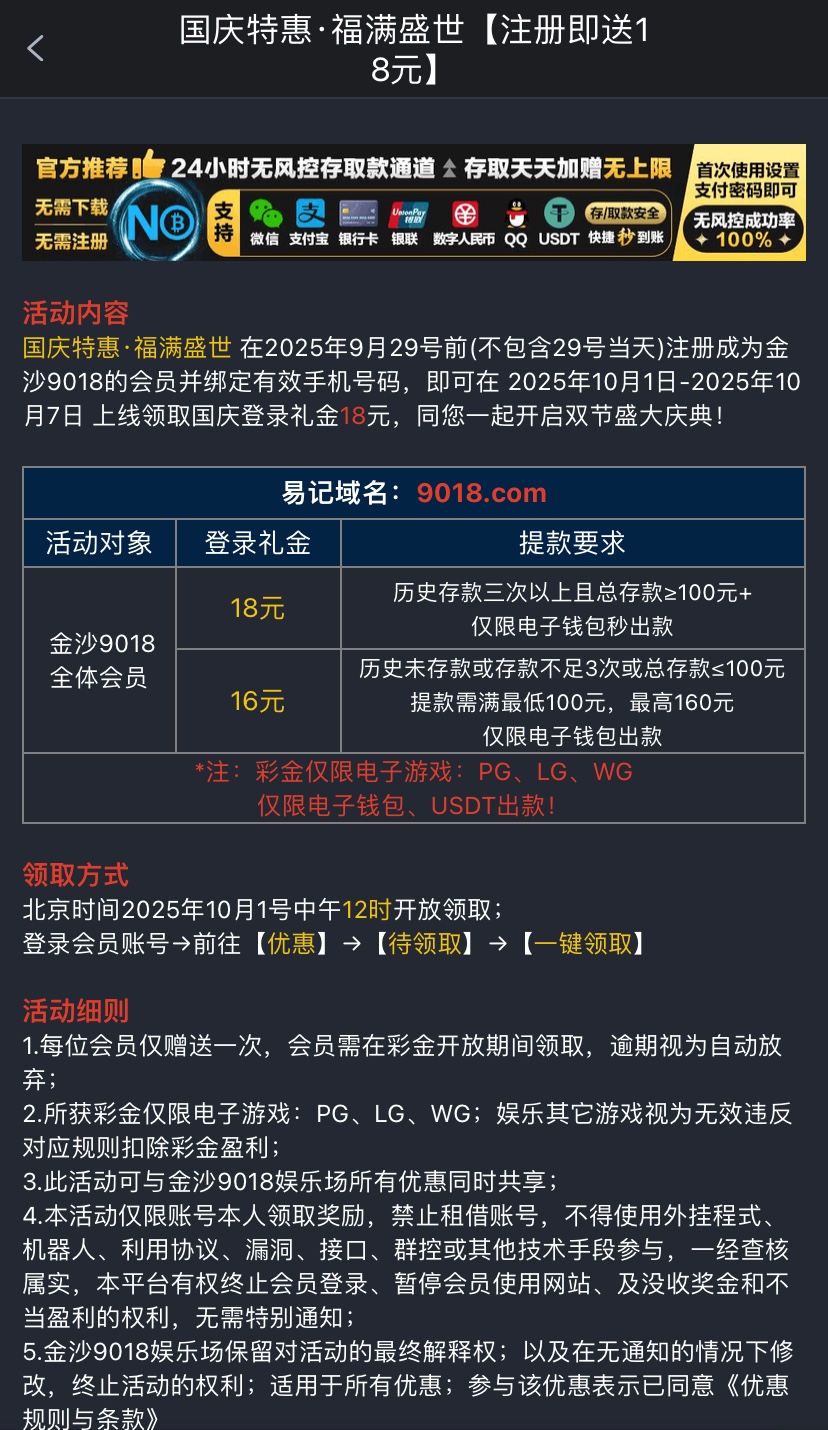 9月29号前注册有号的兄弟登入上去可以领16彩金最低100最高160提款