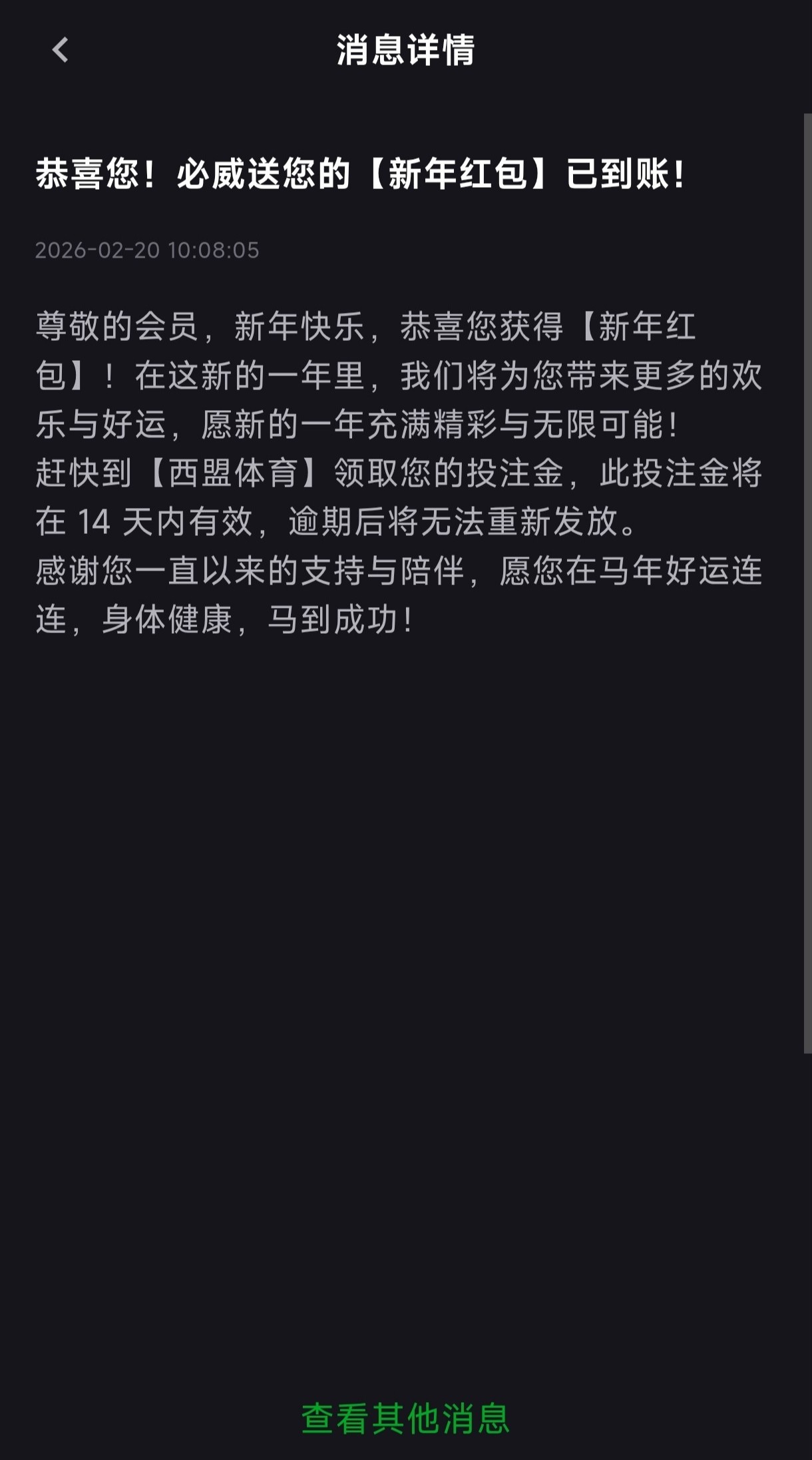 这个平台的老玩家可以登入上看一下有没有别过期了,有这个彩金只能玩西盟体育,不用领取点进西盟体育里面就有了,只能下注中奖了只得中奖金额然后送的彩金扣除