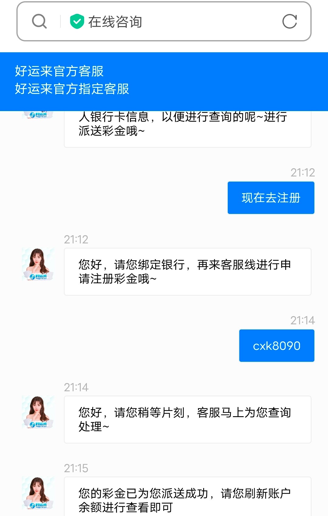 自觉查看有没有下方短信,没有可以尝试碰瓷看看。