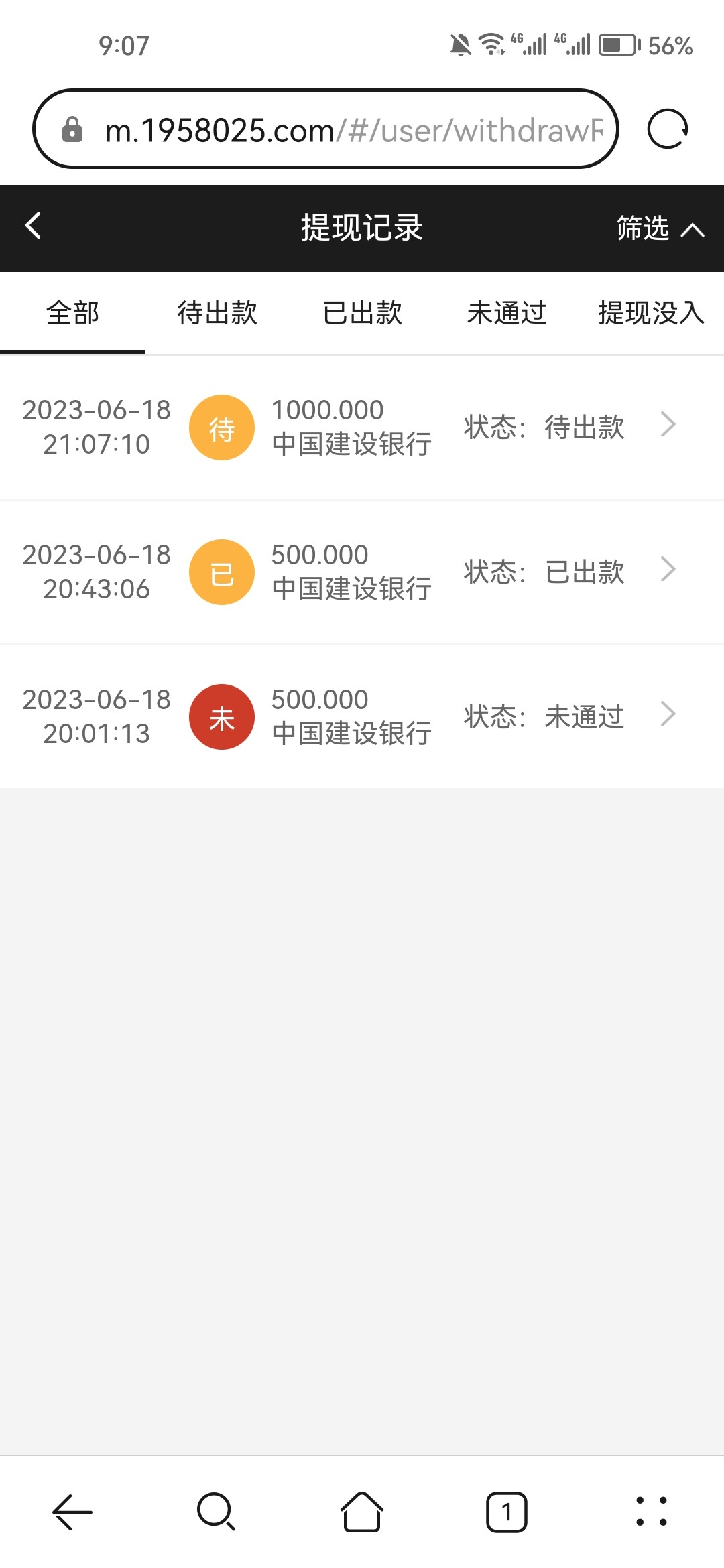我提款到了我表弟的卡上,但是我表弟的卡被封了,账户异常收不到款(转账测试过对方账号异常秒退)但平台提示已出款,大概率被黑了。
