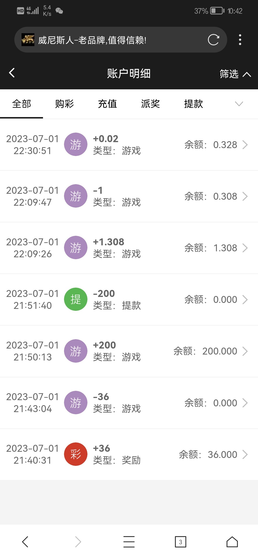 好坑的游戏,三次免费一共就中了8分钱真牛逼