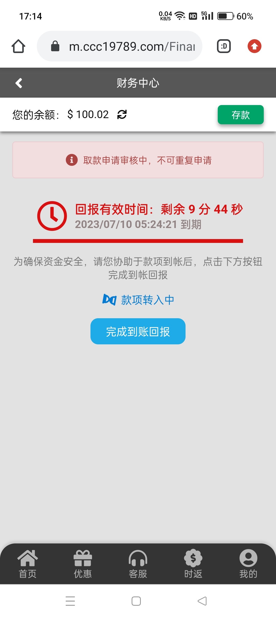 以前特邀系列发过这个台子 老用户有号的登陆领取回馈彩金 亲测没充值也有 无游戏限制 最低提款100元