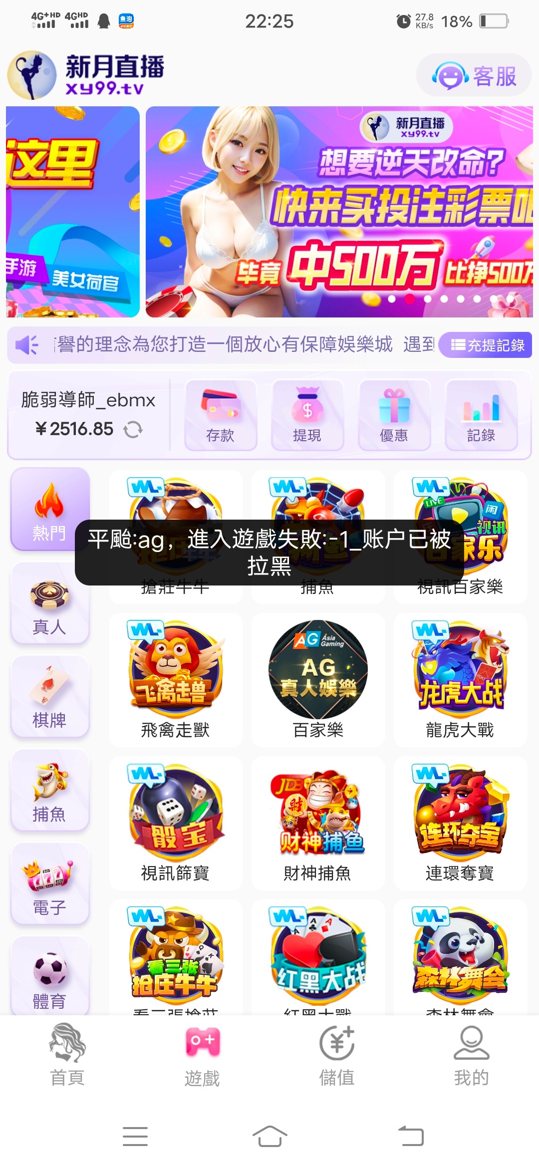 新月黄播台子,充值两百赢了两千三,提现拉黑我账号,秒黑我两千五,大家注意了啊,千万不要充值玩